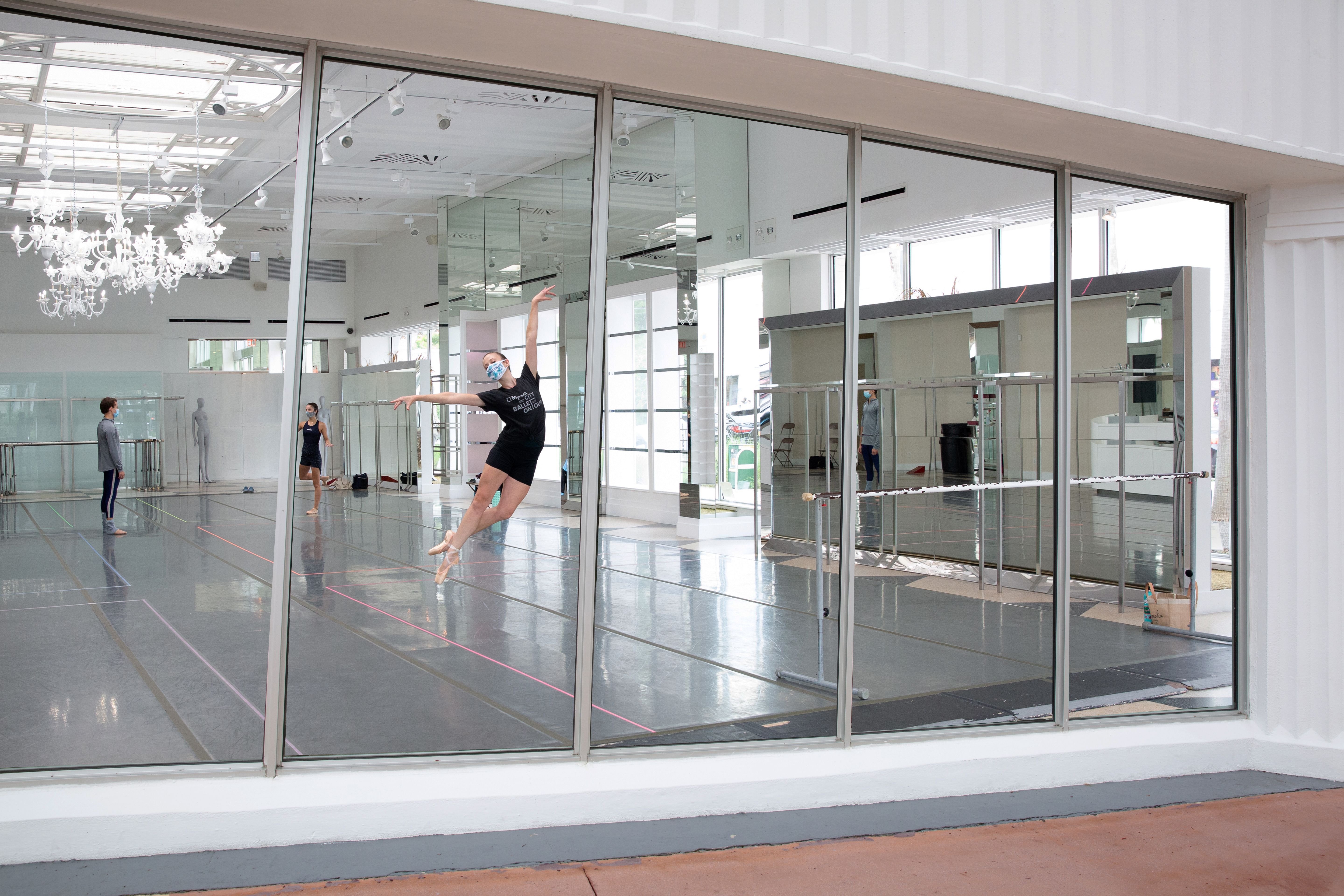 Albertson explica que “como bailarines, necesitamos períodos para descansar, pero varios meses de descanso a la vez no son buenos para ningún atleta a menos que se esté recuperando de una lesión. Tenemos que estar entrenando constantemente para mantenernos en la forma necesaria para ser buenos en lo que hacemos. Durante 3 meses, todos creamos estudios improvisados en nuestros hogares, en su mayoría pequeños apartamentos, para poder tomar clases de ballet y clases de acondicionamiento en línea. Aun así, estábamos limitados, incapaces de viajar y muy cautelosos para saltar en pisos no suspendidos. Tener el espacio seguro en Lincoln Road nos ha permitido movernos de la manera en que estamos supuestos a hacerlo, nos ha dado algo de lo que es normal para nosotros en este momento muy inestable, y nos está permitiendo hacer lo que anhelamos volver a hacer a tiempo completo, bailar”.