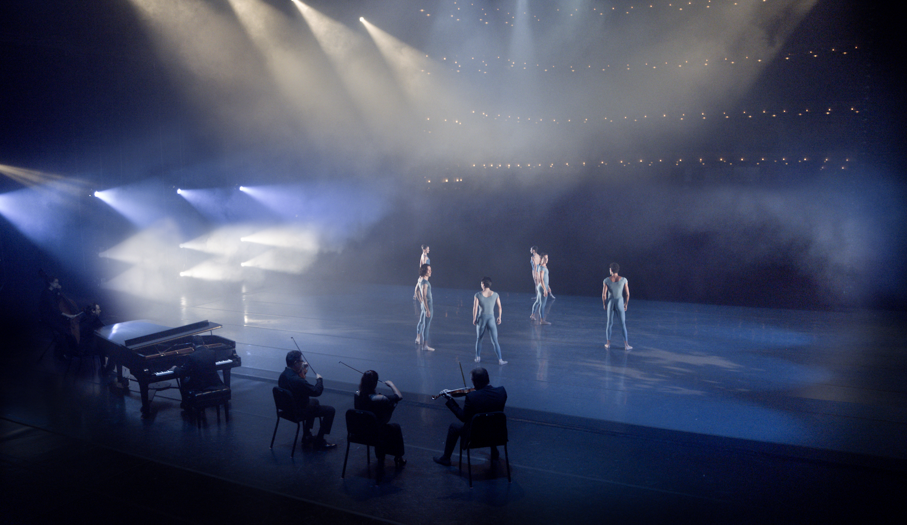 Y añade, “al coreografiar el trabajo específicamente para el cine, el director de fotografía Alexander ‘Sasha’ Iziliaev y yo planeamos tomas que distorsionarían sutilmente la perspectiva lineal típica de ver una actuación en vivo, ya sea a través de un cambio repentino en la orientación o la aparición o desaparición repentina de bailarines y músicos. Diseñé el ballet para que se representara de principio a fin, como se experimentaría normalmente en un escenario de teatro, pero el filme se desvía en varios puntos para subrayar momentos de aislamiento y un sentido ilusorio de comunidad. En los cuadros finales, dejamos el escenario tal y como lo encontramos – completamente vacío, excepto por la evidencia de nuestra presencia – pero con la esperanza y la promesa de que pronto regresaremos”.