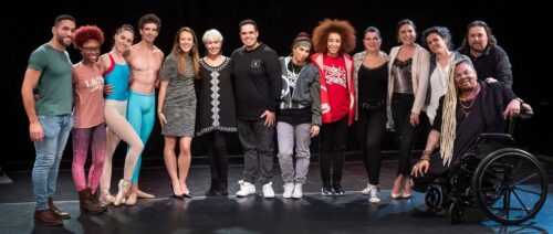 Todos los participantes en “The Space Between: Dance Duets Exposed” en enero de 2019. Fotografía: Mitchell Zachs (cortesía de Miami Dance Hub)