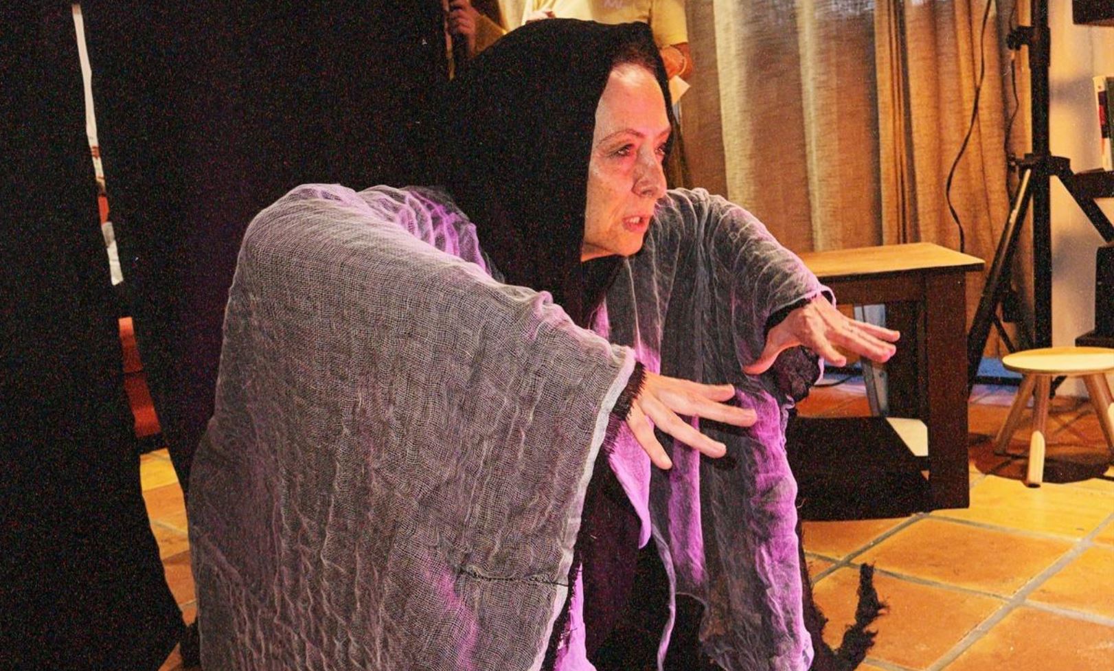 Letty Carmona prepara una escena de “Hambre”, el nuevo espectáculo de Microteatro On Tour. Foto: Flower Power Media Creation (cortesía del Centro Cultural Español de Miami).