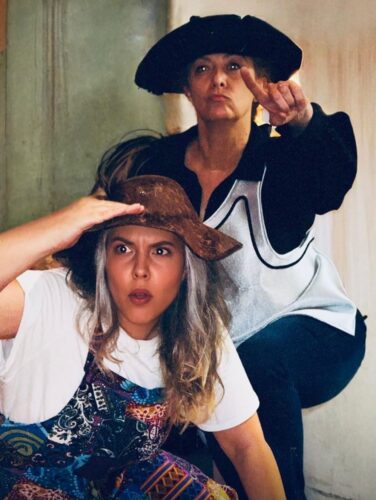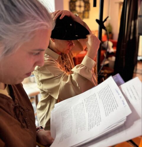 Eugenia Sancho (de pie) y Verónica Cancio di Grandy en pleno ensayo del espectáculo. Fotografía: Flower Power Media Creation (cortesía del Centro Cultural Español de Miami).