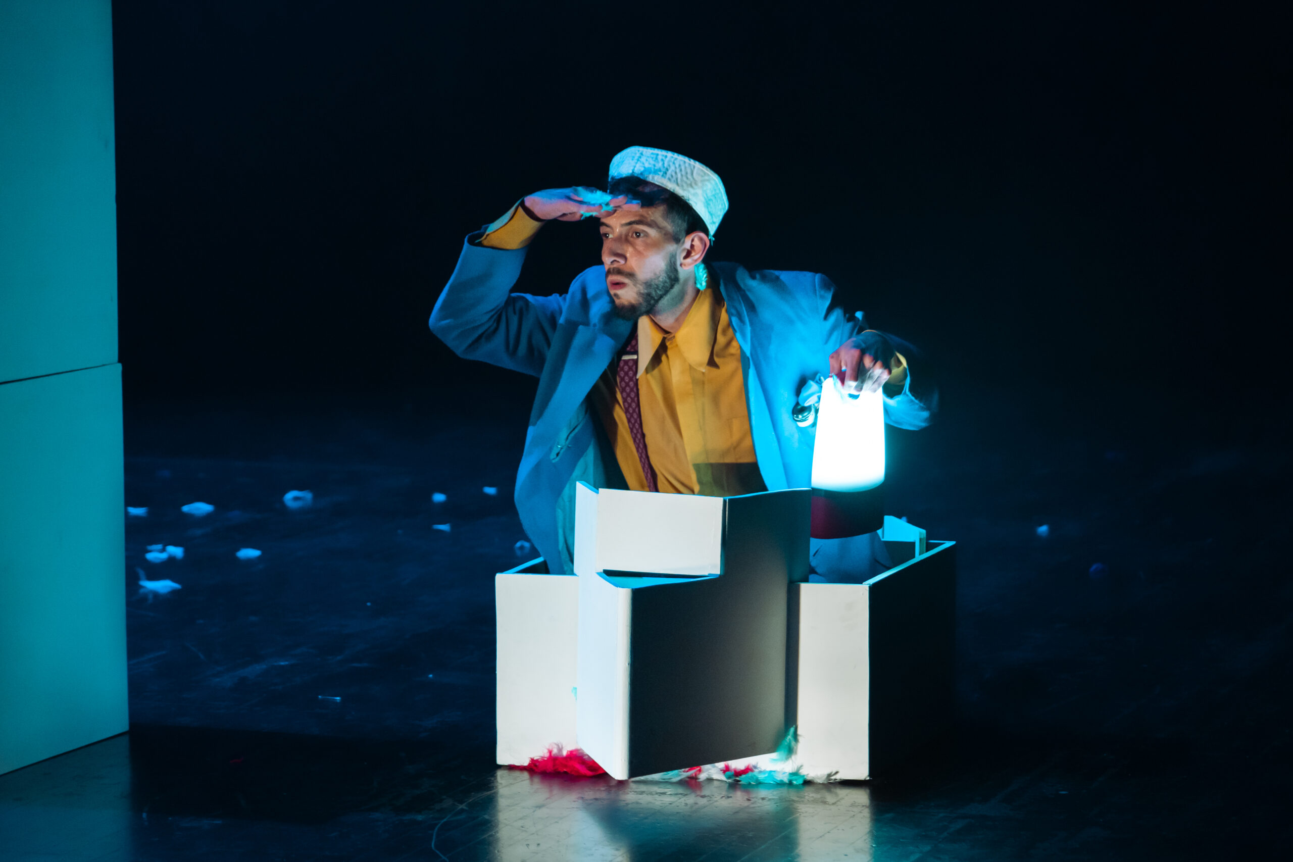 Este es un espectáculo unipersonal que no hace ostentación de sus virtudes, donde el carismático Fernando Leija Flores, que también lo dirige, interpreta un personaje sin nombre, que apenas habla, cuya tarea es enfrentarse y vencer al miedo que sentimos ante lo desconocido.