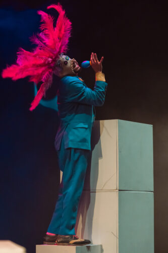 Fernando Leija Flores, jugando a interpretar la canción “Todo es Mentira” de Pascal Comelade y Albert Plá en “Miedo come todo… sueños al vuelo”. Fotografía: Javier Coello (cortesía de FUNDarte)