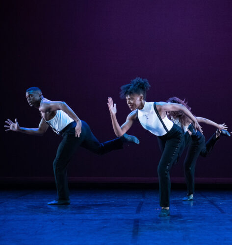 Solomon Dumas, Samantha Figgins y Belen Indhira Pereyra en “For Four” de Robert Battle. Fotografía: Christopher Duggan (cortesía: Alvin Ailey American Dance Theater / Arsht Center)