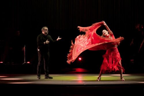Siudy Garrido y Pablo Croce en el teatro Teresa Carreño (Caracas, Venezuela) el sábado 3 de junio de 2023, la primera noche de la gira “Bailaora, Mis Pies Son Mi voz”. Fotografía: Analí Alcántara (cortesía de Siudy Flamenco)
