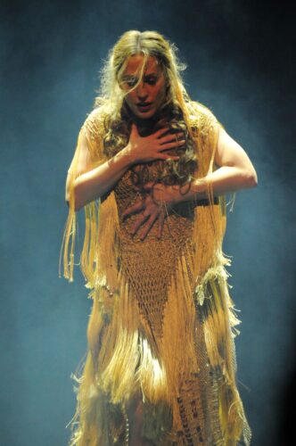 “El diseño de vestuario”, puntualiza, “lo sigo trabajando con quien ha sido siempre mi compañera de diseño, Verónica Porras, pero este año hemos incorporado diferentes diseñadores. Como Andrea Almeida, que creó mi traje de la introducción del espectáculo, todo macramé hecho a mano, y como Mugler, la famosa firma de ropa urbana, con un traje rojo espectacular. Sin olvidar, por supuesto, a nuestros modistos, que trabajan diseños propios”.