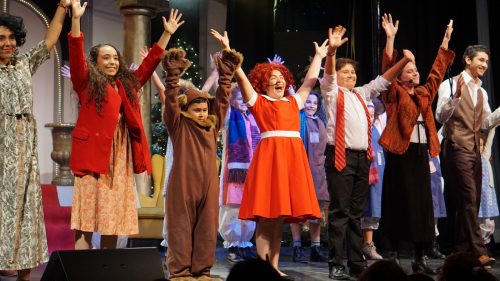 Al terminar la presentación del musical “Annie”, los alumnos responden al aplauso entusiasta del público. Fotografía: Alfredo Armas (cortesía)