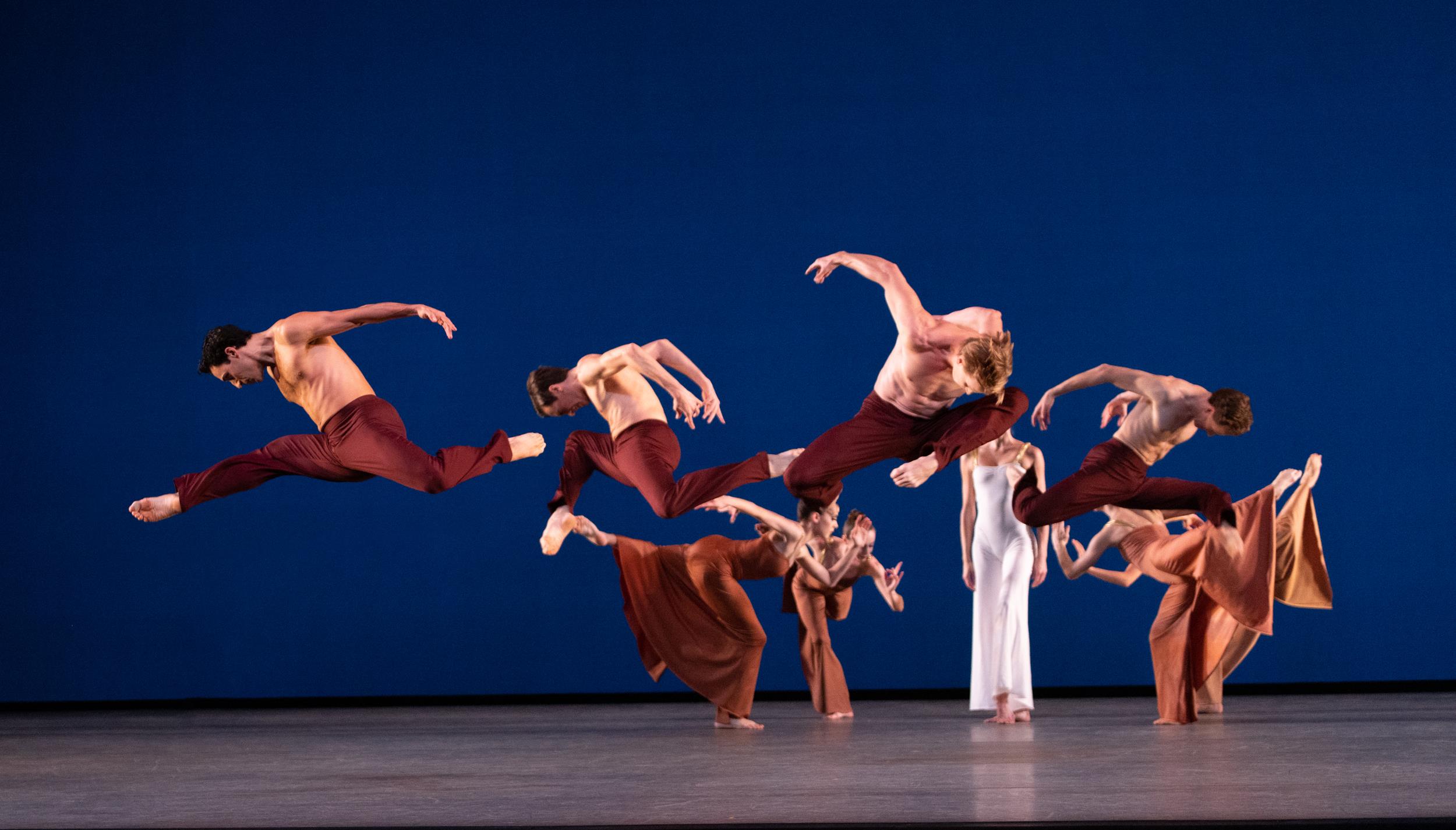 Los bailarines de Miami City Ballet en “Diversion of Angels”, coreografía de Martha Graham que forma parte del programa que la compañía presentará en el Moss Center. Fotografía: Alexander Iziliaev (cortesía de Miami City Ballet).