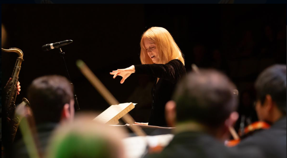 María Schneider, ganadora reciente de dos premios GRAMMY, dirige la orquesta del Instituto Henry Mancini (HMI). Fotografía: J. Abreu (cortesía)