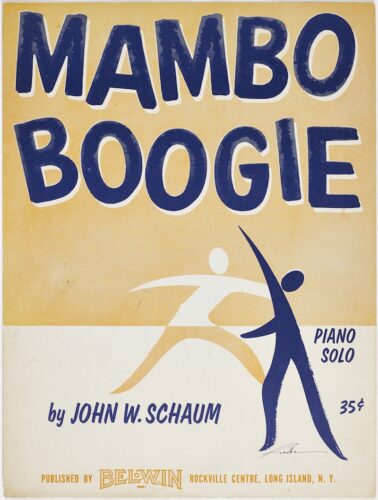 Partitura, Mambo Boogie, 1955 John W. Schaum (1905-1988), compositor Belwin Inc., Long Island, Nueva York City, editorial The Wolfsonian – FIU, Miami Beach. Regalo prometido de Vicki Gold Levi. Fotografía: The Wolfsonian – FIU (cortesía)
