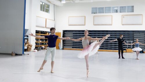Los bailarines de Miami City Ballet, Stanislav Olshanskyi y Dawn Atkins, ensayando “El Lago de los Cisnes” de Alexei Ratmansky. Fotografía: Alexander Iziliaev (cortesía de Miami City Ballet).