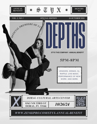STYX The Company, la primera y única compañía profesional de danza comercial de conciertos de Miami que dirigen sus fundadoras, Brianna Campbell y Mika Santo, estrenará la pieza “Depths” (“Profundidades”) en su presentación benéfica anual el sábado 26 de octubre en el Doral Cultural Arts Center.