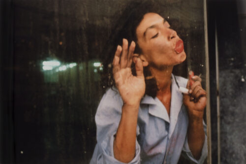 En la siguiente sección “Actuar para la cámara”, las imágenes ya son el resultado de una acción pensada para ser retratada, un gesto de autor, consciente, premeditado, muchas veces íntimo, que se contrapone a las narrativas visuales del reportaje y los medios de comunicación masiva. Aquí aparecen también las capturas de video (video stills). Se enmarca con ello, entre el videoarte y el cine, la evolución de la fotografía como tecnología de reproducción mecánica y digital en movimiento, no solo multiplicadora, sino en sí misma creadora de múltiples realidades ¿históricas?.