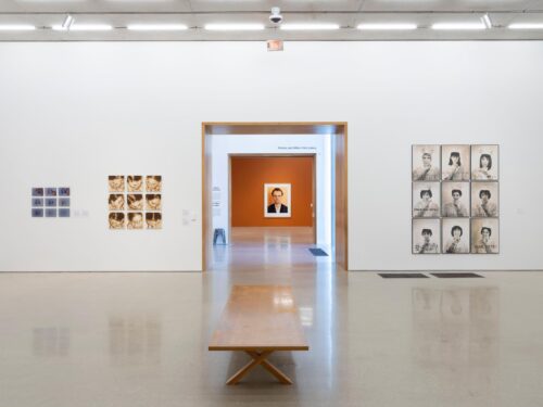 Vista general de la exposición. Imagen tomada desde la sala que agrupa las obras en la sección “La cuadrícula y la imagen seriada”. A la derecha la instalación de Oscar Muñoz “Juliana (Píxeles, Serie C)” (1999-2000). A la izquierda, la obra de Vik Muniz “Enfermeras,” de la serie “Ruido blanco” (1990-1991), y al fondo el retrato de Tomas Ruff, “Porträt (Bernd Jünger) (Retrato [Bernd Jünger]),” 1985. Fotografía: Oriol Tarridas (cortesía del PAMM).