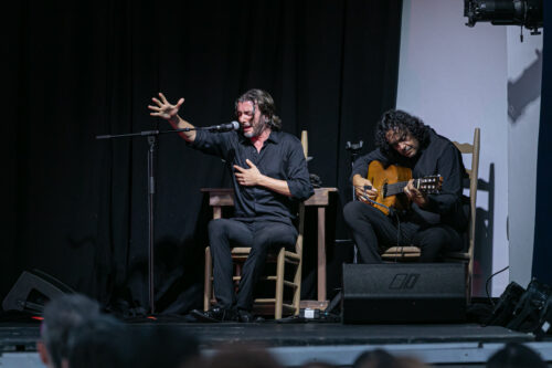 El cantaor José Díaz “El Cachito” y José Luis de la Paz, guitarrista y compositor de la música de “Callejón flamenco”. Fotografía: Jenny Abreu (cortesía de BFLR).
