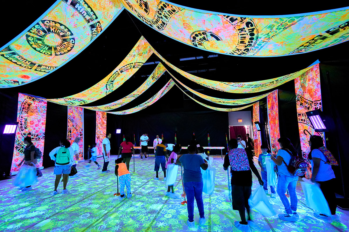 Attendees at a past AKI Festival enjoy the colorful and interactive glow room. Photo by John D. Andersen.