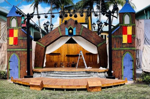 The outdoor stage created for “Shrek” at Sunset Place. Photo courtesy of Area Stage.