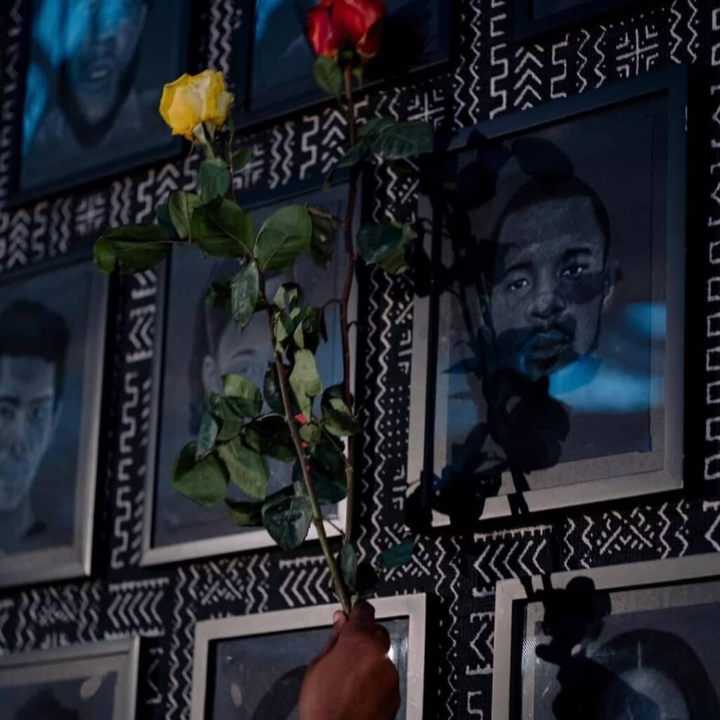 Artist VantaBlack with her installation “Say their names,” photo credit Clara Toro. Courtesy the artist.