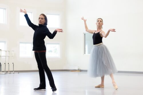 Artistic Director Lourdes Lopez and Jordan-Elizabeth Long rehearsing “La Valse.” Choreography by George Balanchine © The George Balanchine Trust. (Photo by Alexander Iziliaev/courtesy of Miami City Ballet)