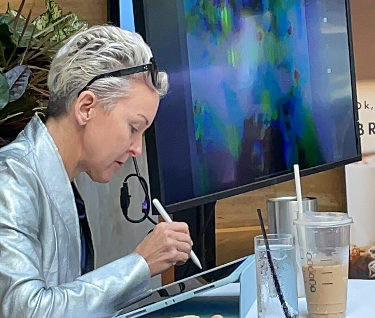 It’s how she created a performative digital painting where the iPad screen was shared on monitors in the lobby “so people could witness my decisions in real time,” she said.