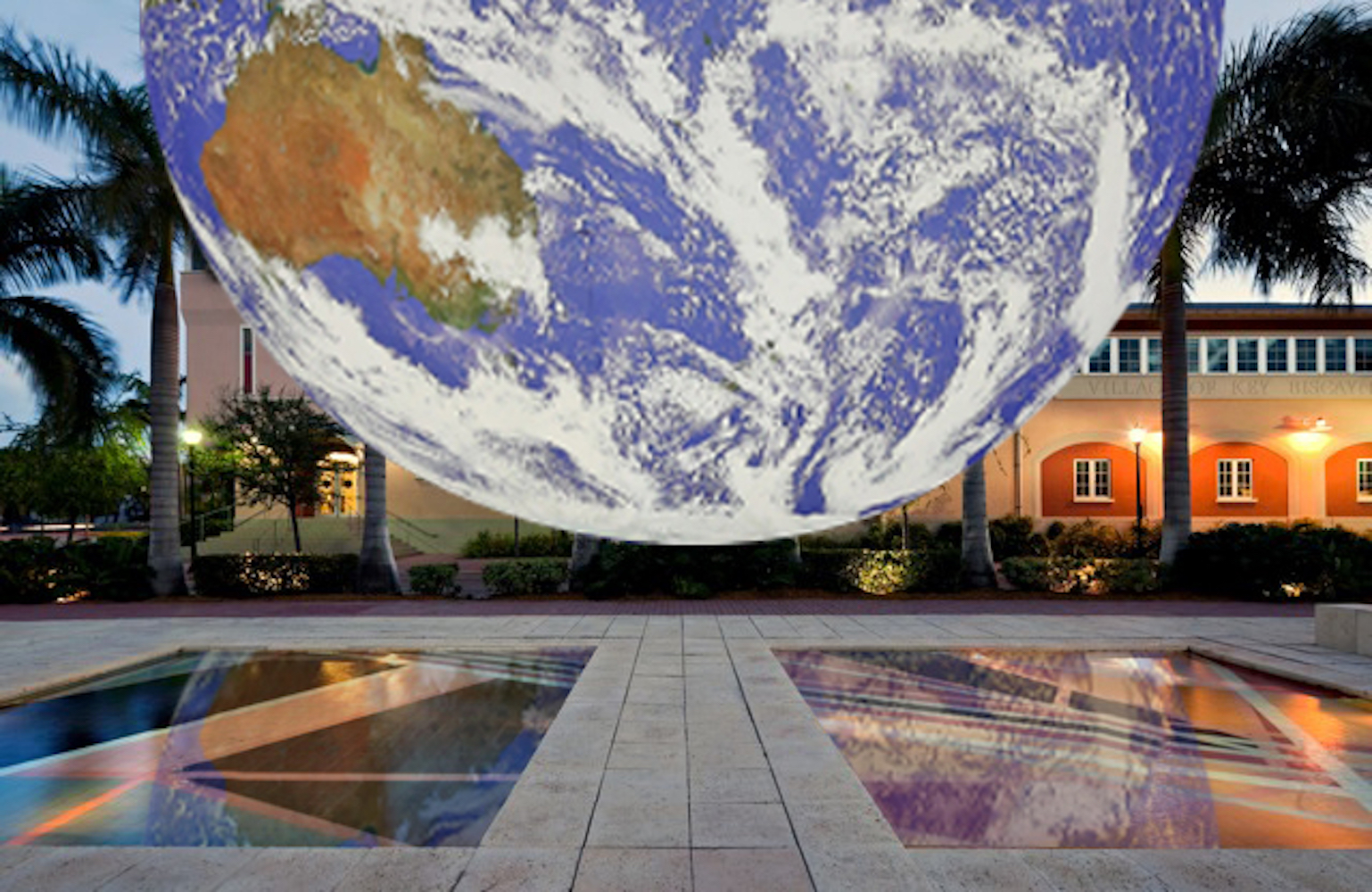 “Gaia,” the global touring art installation by Luke Jerram will be on display for a week of Earth Day events over the Monaco Reflecting Pool, Key Biscayne. This is a photo mockup of the installation which measures nearly 23 feet in diameter and is a scale replica of Earth, created using detailed NASA imagery of the planet’s surface. (Photo courtesy of Luke Jerram)