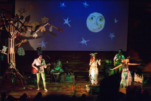 “Nuestro reto ha sido transmitir mensajes del ciclo de la vida y por ejemplo si el árbol se vuelve cartón queríamos cerrar el círculo convirtiendo al cartón en un árbol”, explica Camila Rivera. “Todos los integrantes estamos involucrados en la composición de las letras, producción de la música y construcción de la escenografía”.