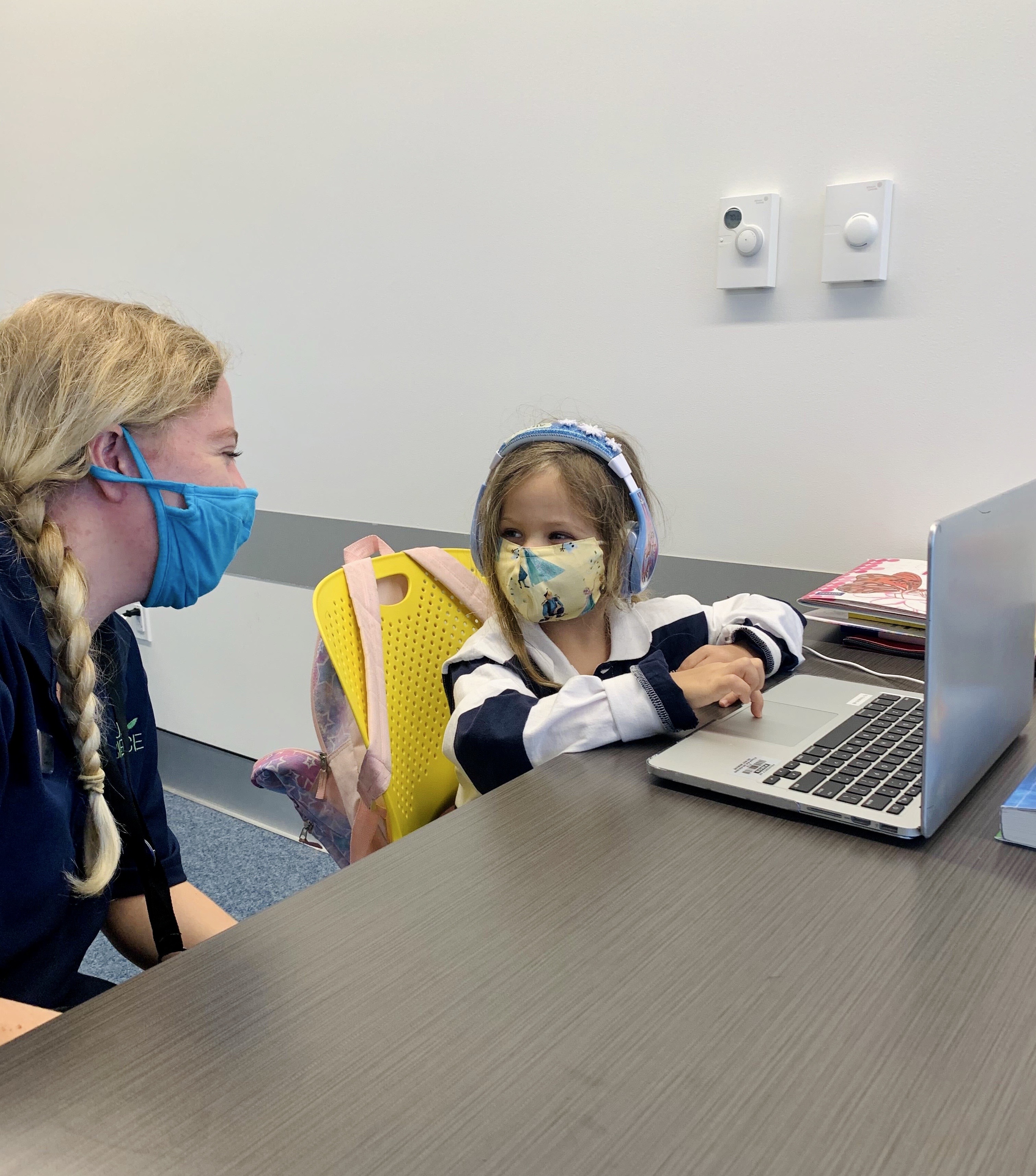 The educator provides basic technical support and supervision throughout the day as well as homework assistance. Students are placed in a private group with nine students maximum, forming a pod.