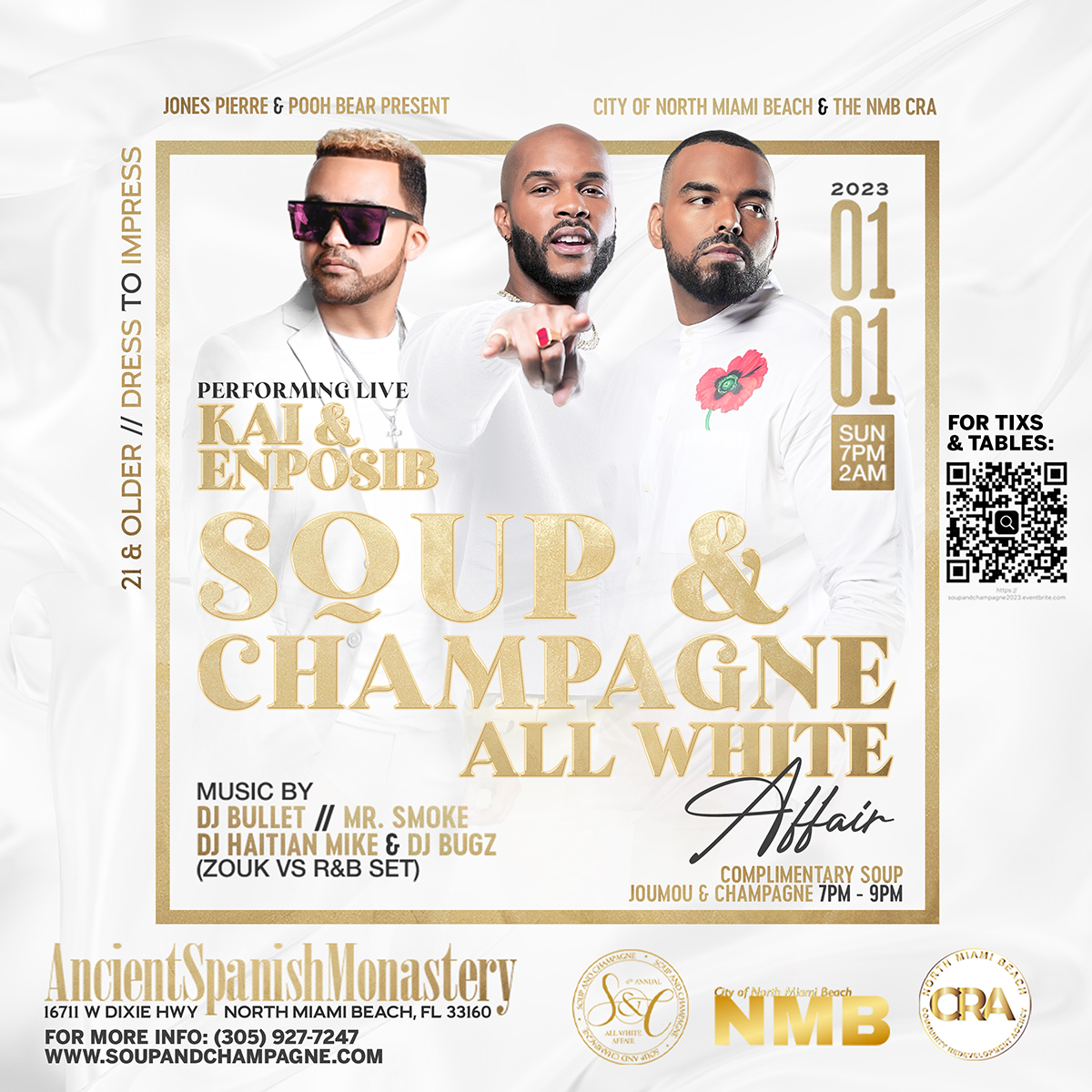 The fourth annual Soup and Champagne All-White Affair is scheduled for Sunday, January 1, 2023 at the Ancient Spanish Monastery in North Miami Beach.