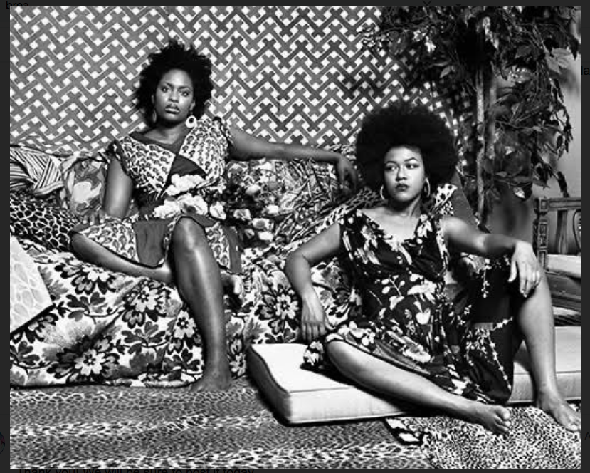 Mickalene Thomas, b.1971, Camden, New Jersey, lives and works in Brooklyn, New York. A Moment’s Pleasure in Black and White Chromogenic print 2006 14 x 17 inches Collection of Francie Bishop Good and David Horvitz.