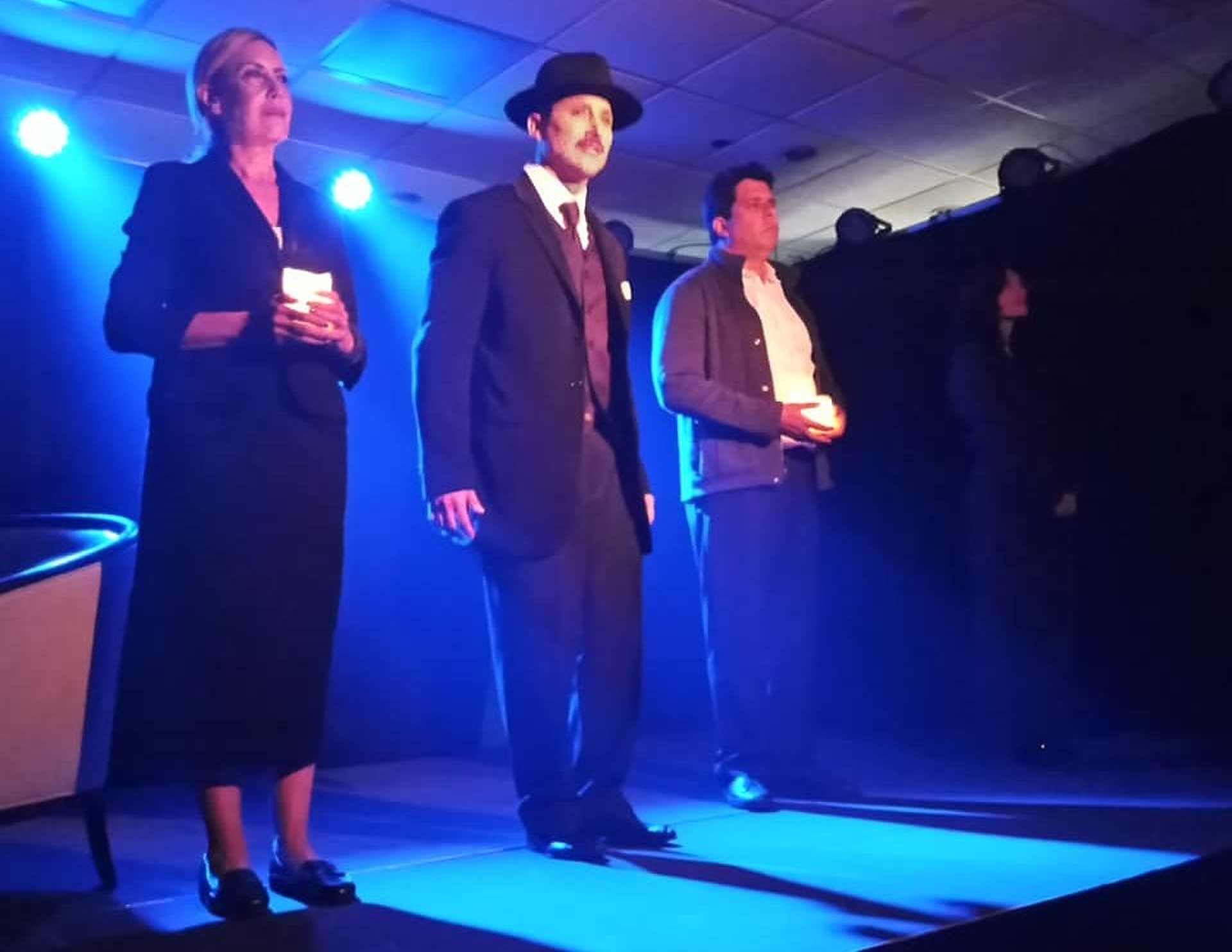(de izq. a der.) Indira Leal, Adrián J. Matos, Luis Carreño y Jamie Sasson en la obra “El Santo Patriota”, autoría y dirección de José Pérez. Fotografía: Oscar García de Paula “Oscarito” (cortesía)