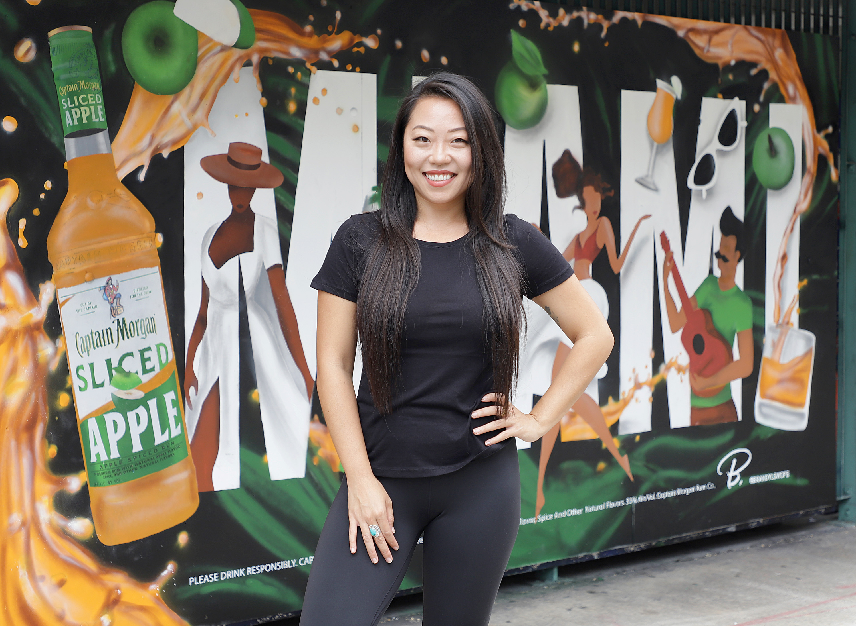 She was the winning artist chosen from the 305 to create a mural for Captain Morgan Sliced Apple Spiced Rum’s 10-city, 11-mural, nine-artist showcase.