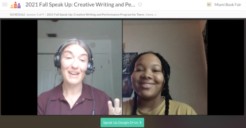 Speak Up! Workshop hosted online. Image courtesy Miami Book Fair.