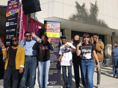 Young writers from the 2019 Speak Up showcase, at The Porch at Miami-Dade College Wolfson Campus. Image courtesy Miami Book Fair.