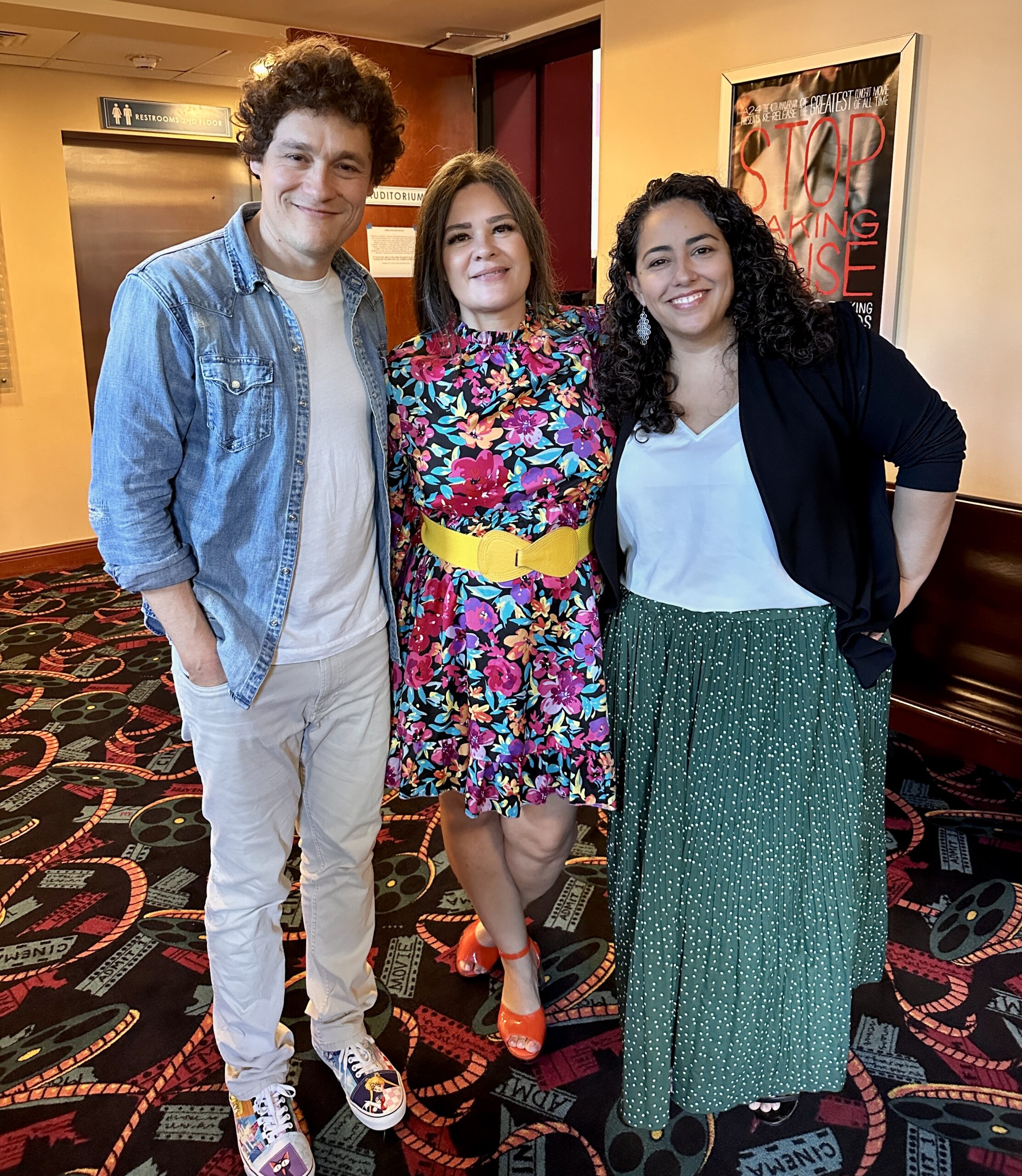 L-R Phil Lord, Brenda Moe Coral Gables Cinema Executive Director and Jennifer Castellanos founder of Miami Film Lab. Photo courtesy Coral Gables Art Cinema.