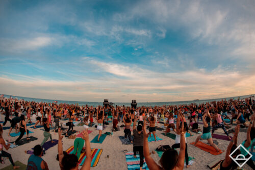 Daybreaker Miami participants practice yoga as part of the day’s events. Photos courtesy of Daybreaker.