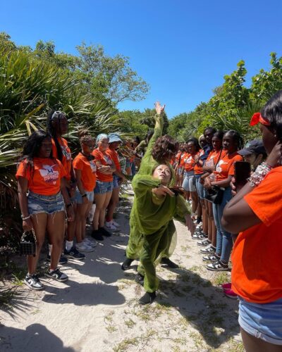 Andree, an advocate for educational outreach, collaborated with a naturalist, dancers, spoken word artist Arsimmer McCoy, and percussionist Ray Robinson to immerse students in Crandon Park’s nature. Through field trips, students engaged with the environment and expressed their interpretations via spoken word, dance, and writing prompts. The program culminated in a performance where dancers improvised based on the students’ written reflections and observed movements.