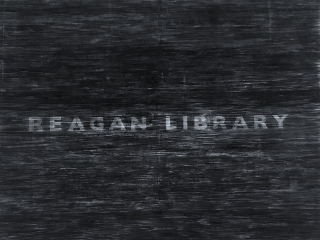 This is exactly the method she uses in her piece entitled “Reagan Library.”