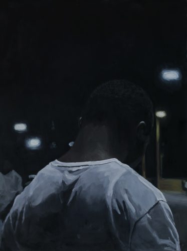 Reginald ONeal, Under the Street Light; 80 x 60 in; 2021; Oil on canvas. Image courtesy Spinello Projects / Oolite Arts.