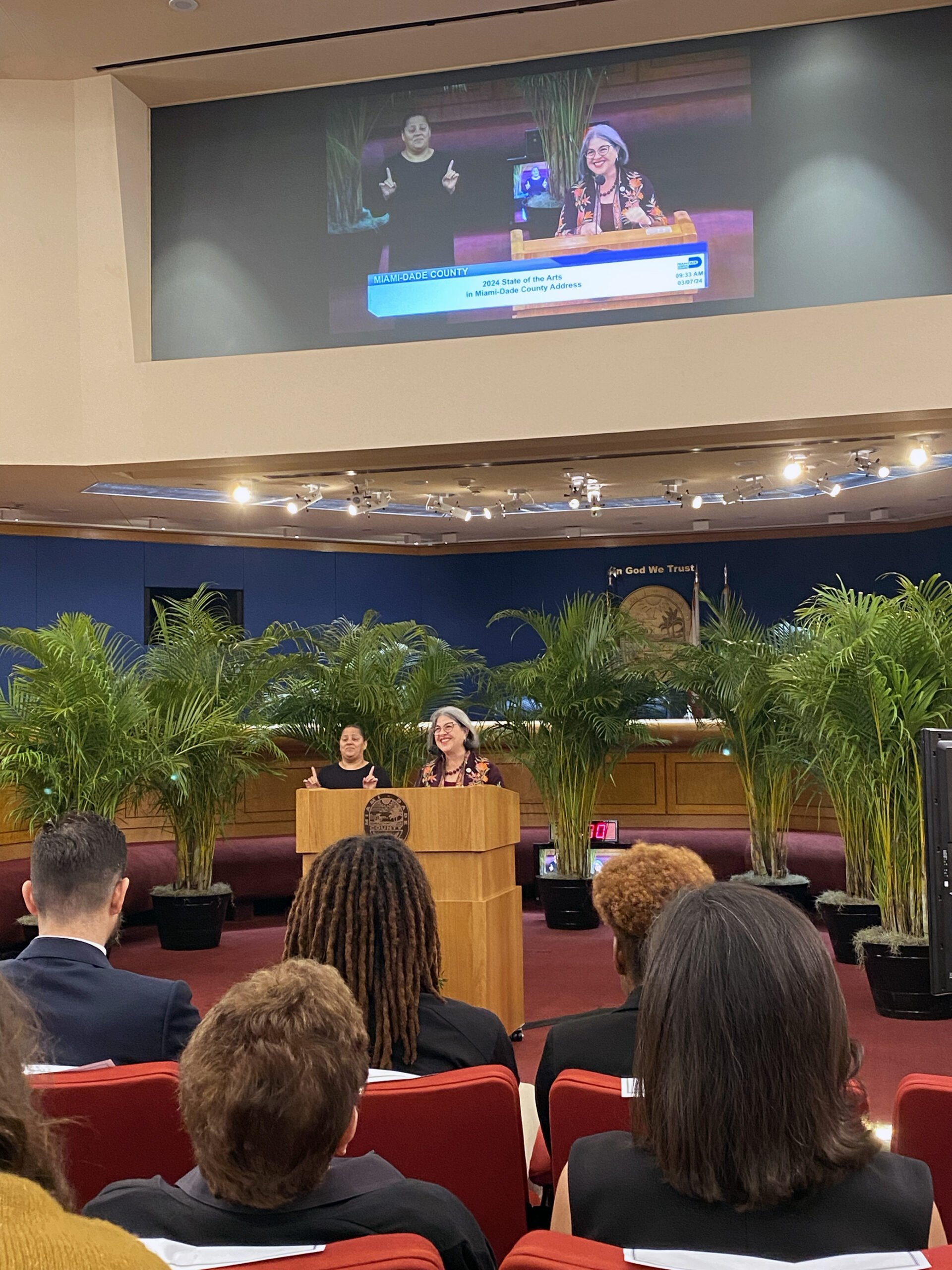 Mayor Daniella Levine Cava addressed a full house at the Miami-Dade County Commissioners Chambers in Downtown Miami for the 15th State of the Arts Address.