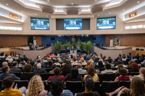 Members of the arts community listen to Brian E. May deliver the 2025 State of the Art in Miami-Dade County address. (Photo courtesy of Miami-Dade County)