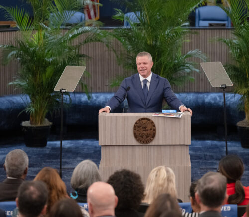 Brian E. May, chairman of the Miami-Dade Cultural Affairs Council, delivers the 2025 State of the Arts in Miami-Dade County Address on Thursday, Feb. 6. (Photo courtesy of Miami-Dade County)