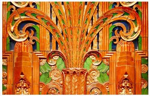 One of 16 Zoom backgrounds offered by The Wolfsonian—FIU. Credits: Norris Theatre window grille, Norristown, Pennsylvania,1929. XX1989.429