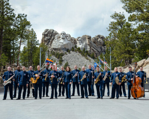 Airmen of Note performing in front of Mt. Rushmore. (Photo courtesy of The USAF Band)