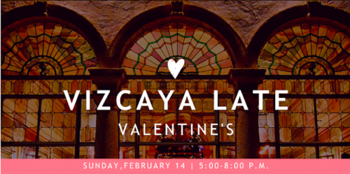 Vizcaya Museum and Gardens, Vizcaya Late: Valentine — Explore the Main House at twilight and stroll through the beautiful formal gardens as live music fills the air. Reservations are required for this early low-key date night from 5:00 to 8:00 PM. For tickets.