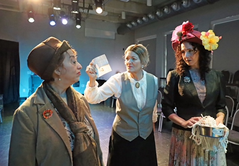 Left to right, Carla Zackson Heller as writer Gertrude Stein, Laurie Tanner as art collector and socialite Claribel Cone, and Leslie Kandel as writer Alice B. Toklas in a scene from “The Equivalent of Sensation”, a play by Arianna Rose presented at the Sandrell Rivers Theater in Liberty City. Photo credit Angelo Canzani.