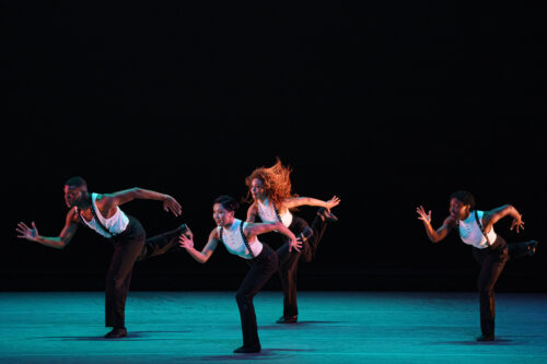Company veteran Yannick Lebrun gave a marvelous performance in “In/Side,” a solo to Nina Simone singing “Wild is the Wind,” twisting and contorting as if emotional agony were literally turning him inside out. “Ella,” by contrast, was all lickety-split musical and physical playfulness, with an excellent Ghrai-DeVore Stokes and Samantha Figgins charming the audience in this blisteringly fast, witty mirroring of Ella Fitzgerald’s vocal pyrotechnics. It felt similar to “For Four,” with Ashley Kaylynn Green, Solomon Dumas, Belén Indhira Pereyra and Miranda Quinn stunning and charismatic in a virtuoso spinning, leaping, booty winding (with a hint of vaudeville) choreographic riffing on Wynton Marsalis’s “Delfeayo’s Dilemma.” (Two brief activist gestures, an image of an American flag and the dancers raising their fists in the air, felt out of place.)