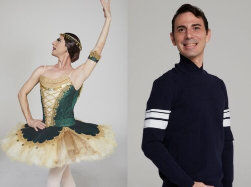 Alejandro Gonzalez Rodriguez, right, was living in Miami when he was cast in the company of Les Ballets Trockaderos. At left, Gonzalez as ballerina Maria Clubfoot. (Photo courtesy of Zoran Jelenic)