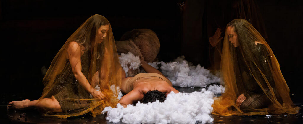 Britney Tokumoto, Luciano Cortes, and Victoria Mora in Rosie Herrera Dance Theatre’s “Devotion.” (Photo courtesy of Ben McKeown)