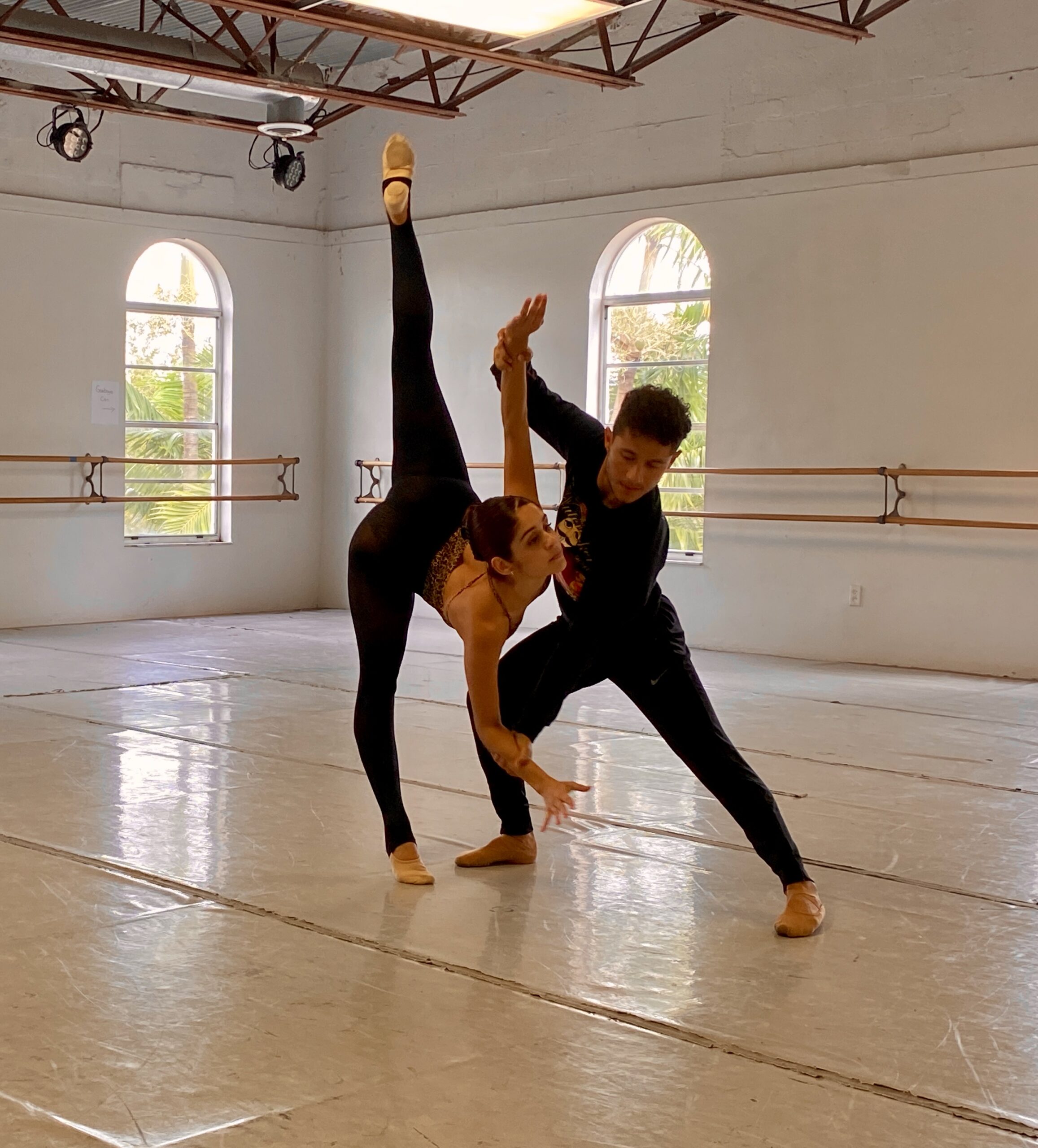 Miranda Montes de Oca and Kevin Hernandez rehearsing for “DECO: Danzón of Eclectic Cultural Origin.” (Photo courtesy of Dimensions Dance Theatre of Miami)