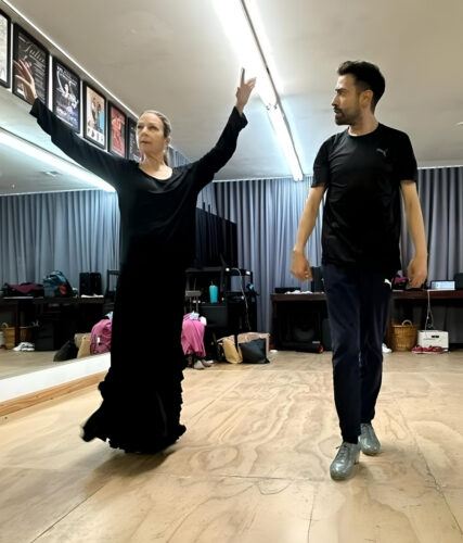 Ilisa Rosal, artistic Director of “Ballet Flamenco La Rosa,” in the studio with dancer Armando Tovar. (Photo courtesy of Pilar Fernández)